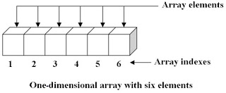 | Um array de uma dimensão, com 6 elementos (variáveis do mesmo tipo) |